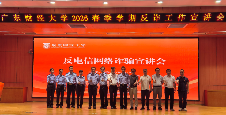 近日,保卫部党支部联合广州市公安局海珠分局反诈中心、官洲派出所,在正心堂开展“党建引领反诈宣防,警校同心守护平安”主题党日活动暨反网络电信诈骗宣讲会,警校携手筑牢校园反诈防线。广州市公安局海珠分局官洲派出所、反诈中心有关负责同志,我校雷宇副校长,校内相关职能部门负责人、各学院分管学生工作副书记、全体辅导员及学生代表参加,活动由支部书记田辉主持。